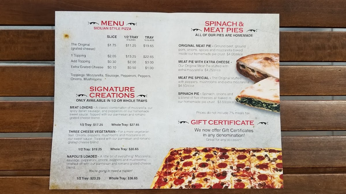 Napoli's Pizza Menu